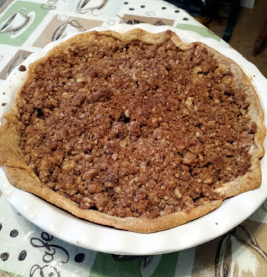 Combine brown sugar, cinnamon, flour, and butter in a medium bowl. Mix until resembles thick crumbs. Sprinkle mixture on top of pie.